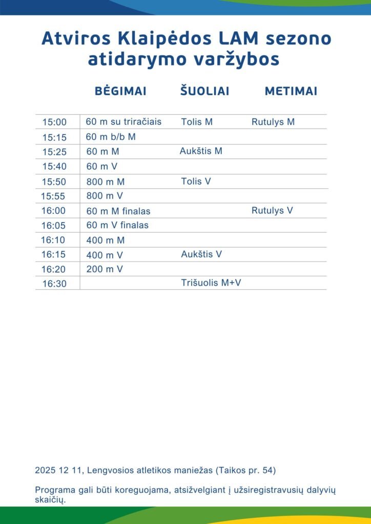 Atviros Klaipėdos lengvosios atletikos mokyklos žiemos sezono atidarymo varžybos